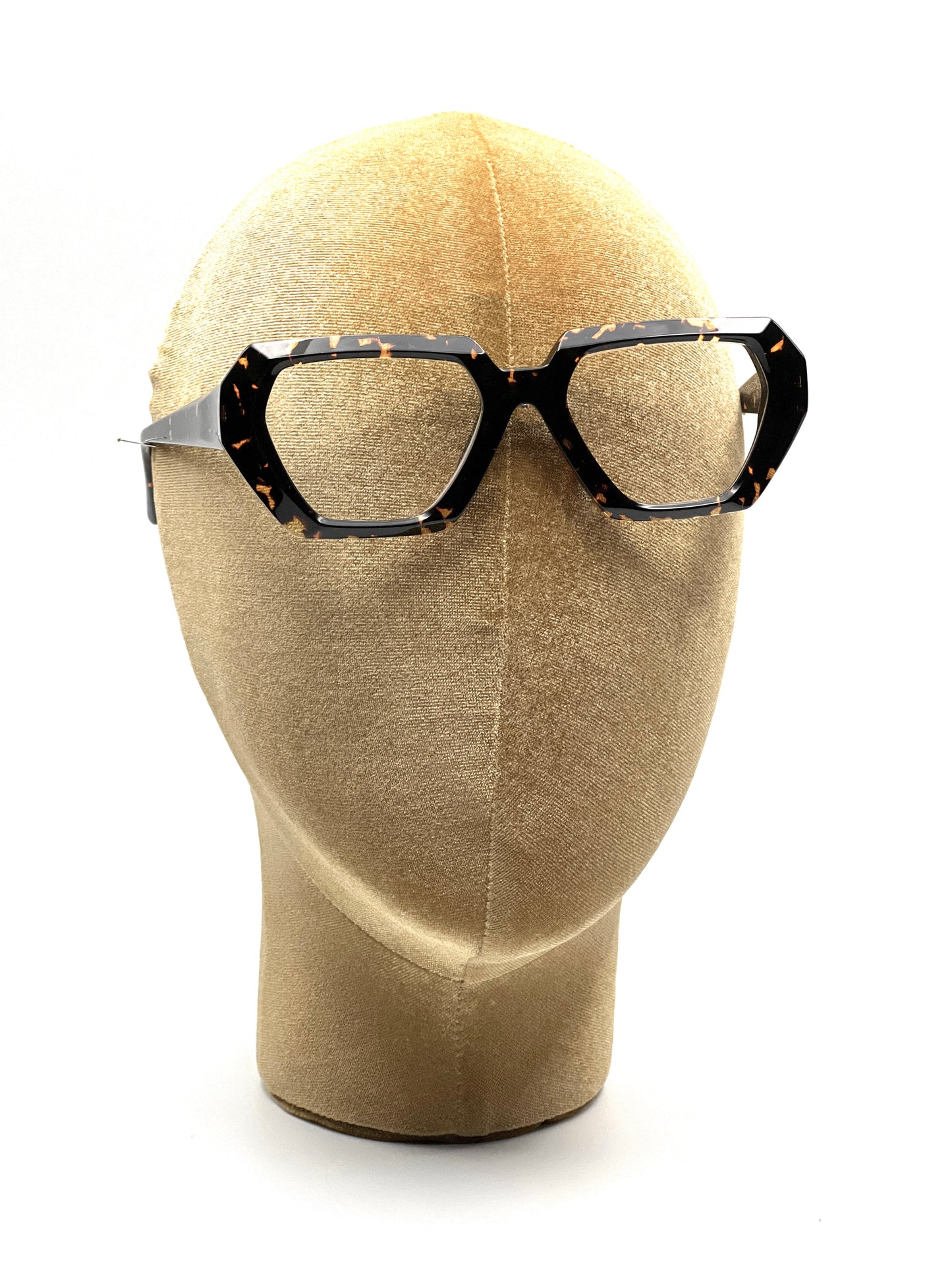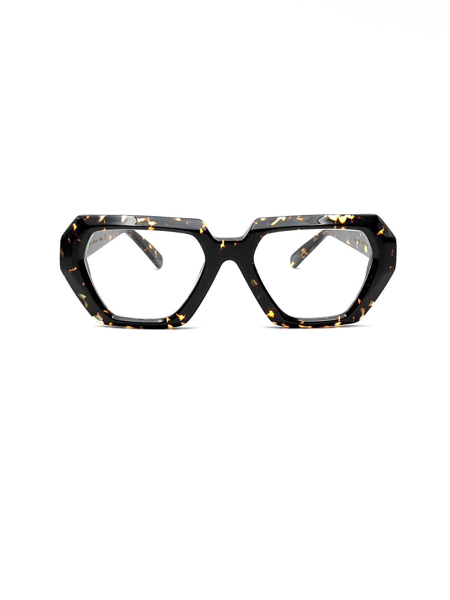 Freeform in doppia lastra di cellulosa avana maculata lucida. Fatto artigianalmente a mano in Italia.