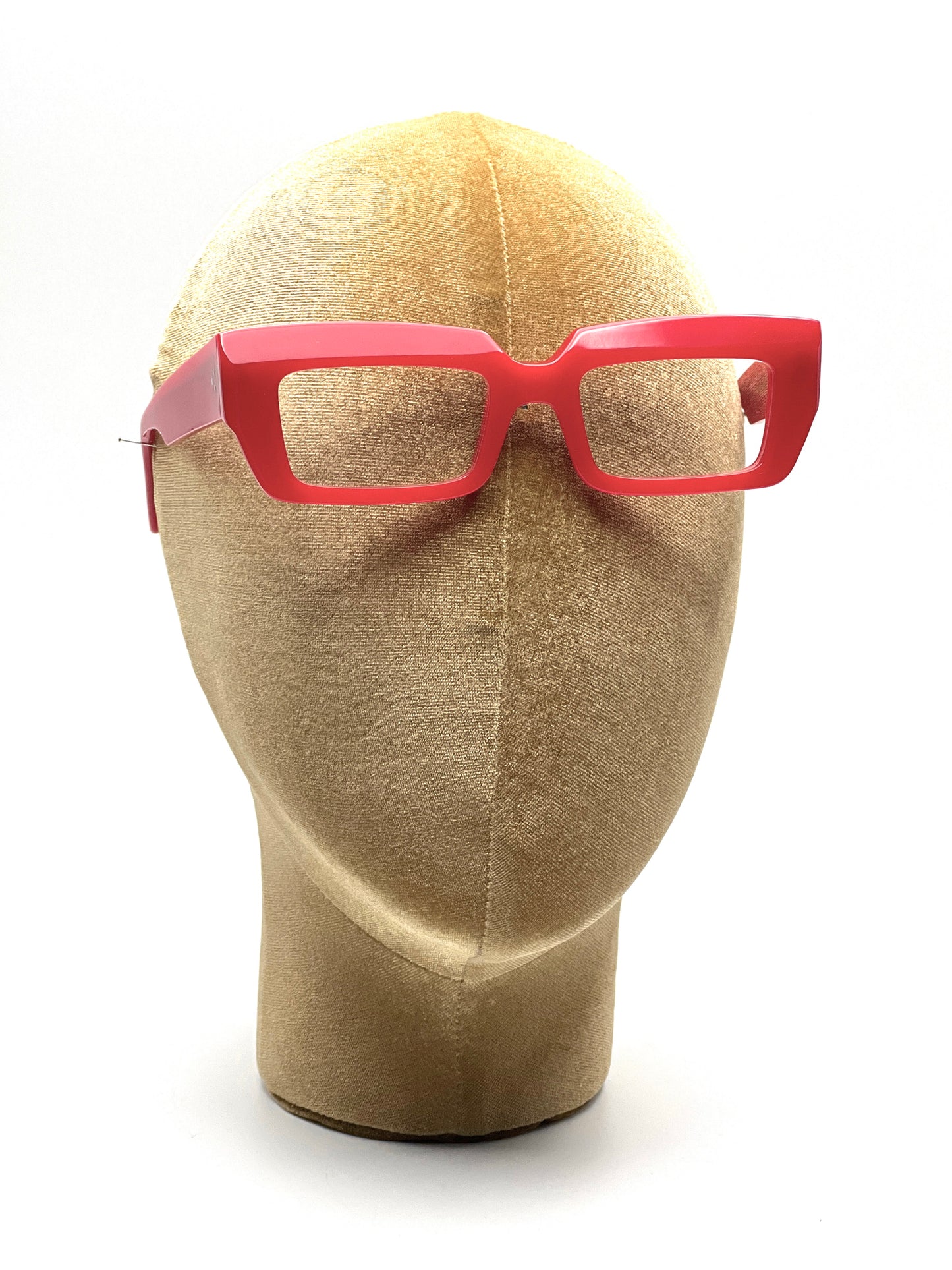 Rettangolare con frontale spesso in lastra laccata lucida rossa. Fatto artigianalmente in Italia.