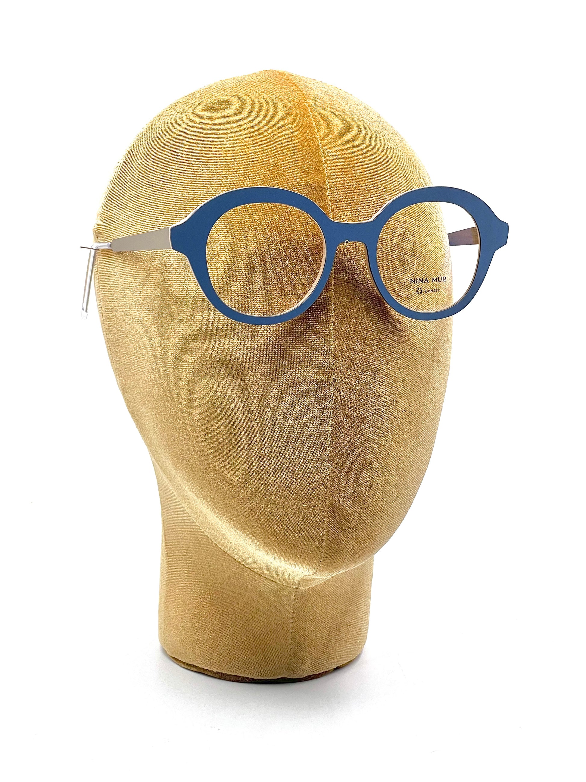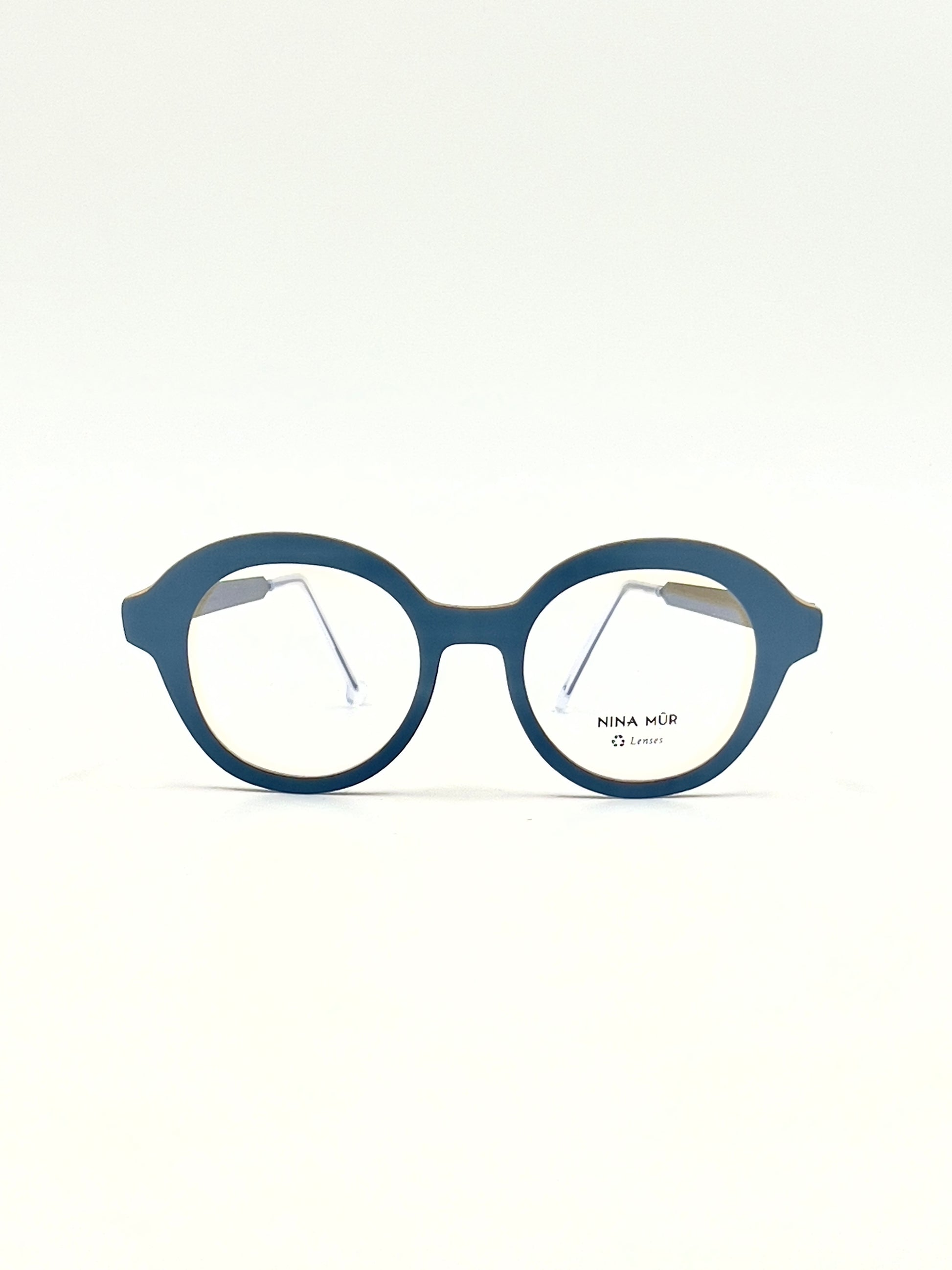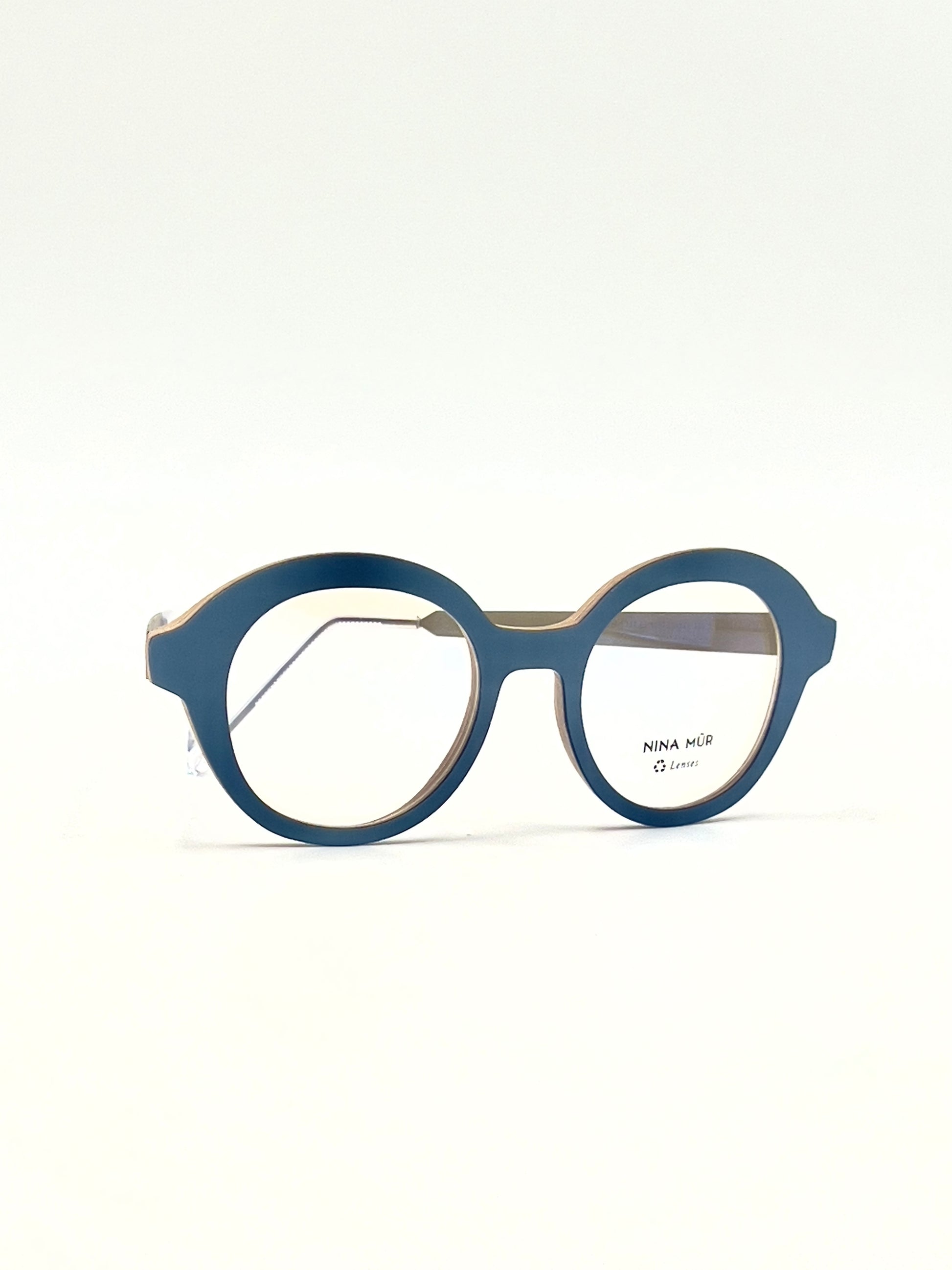 Pantos ampio in leggerissimo legno di betulla blu mare opaco e aste metallo oro satinato 5mm. Fatto a mano a Madrid.