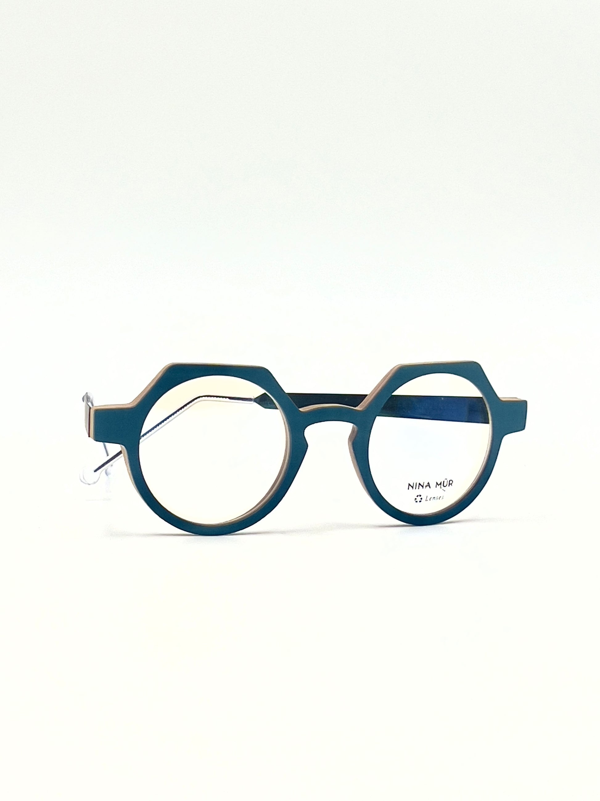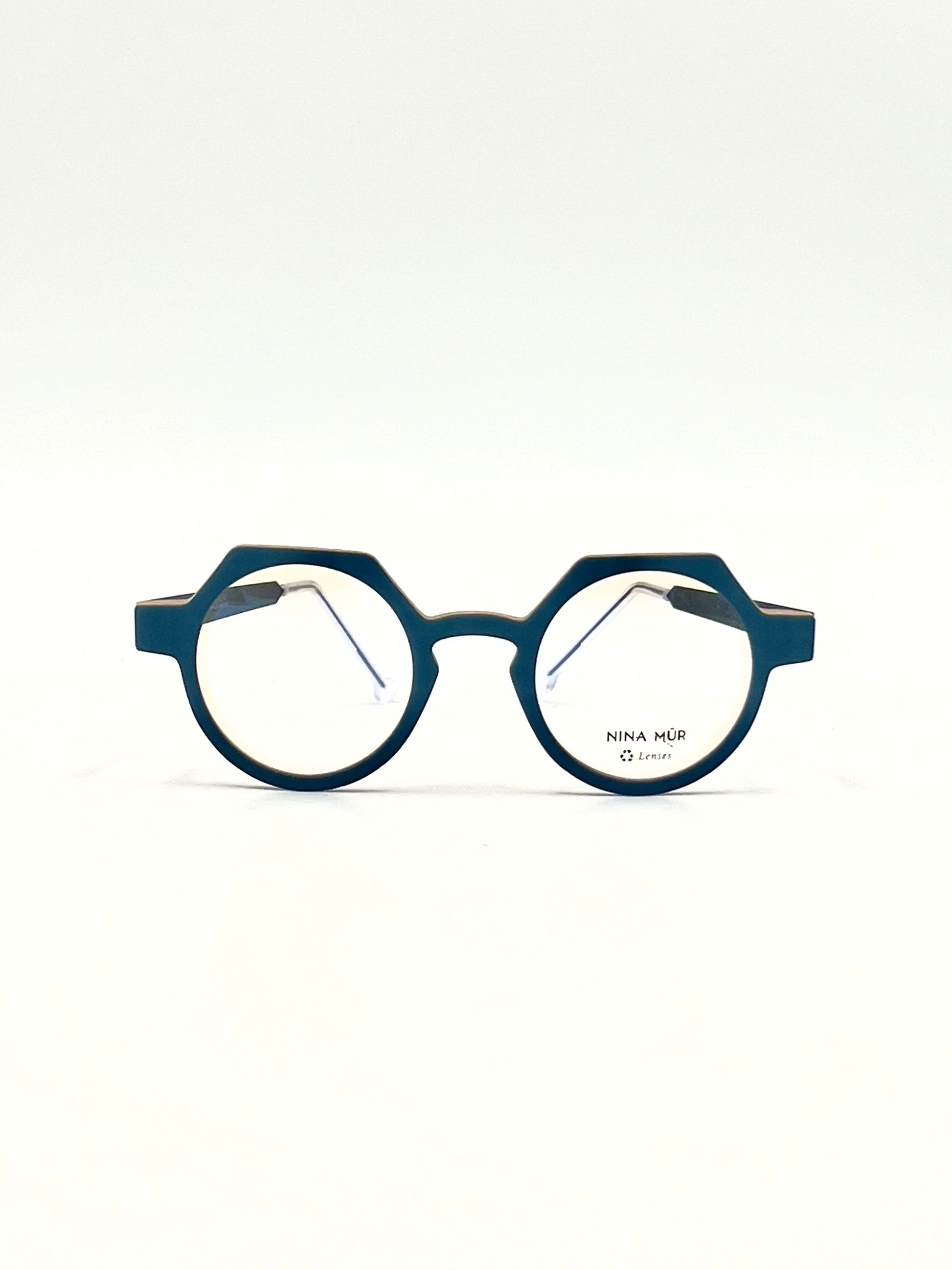 Forma astratta in leggerissimo legno di betulla blu ottanio opaco e aste metallo grigio antracite matt 9mm. Fatto a mano a Madrid.